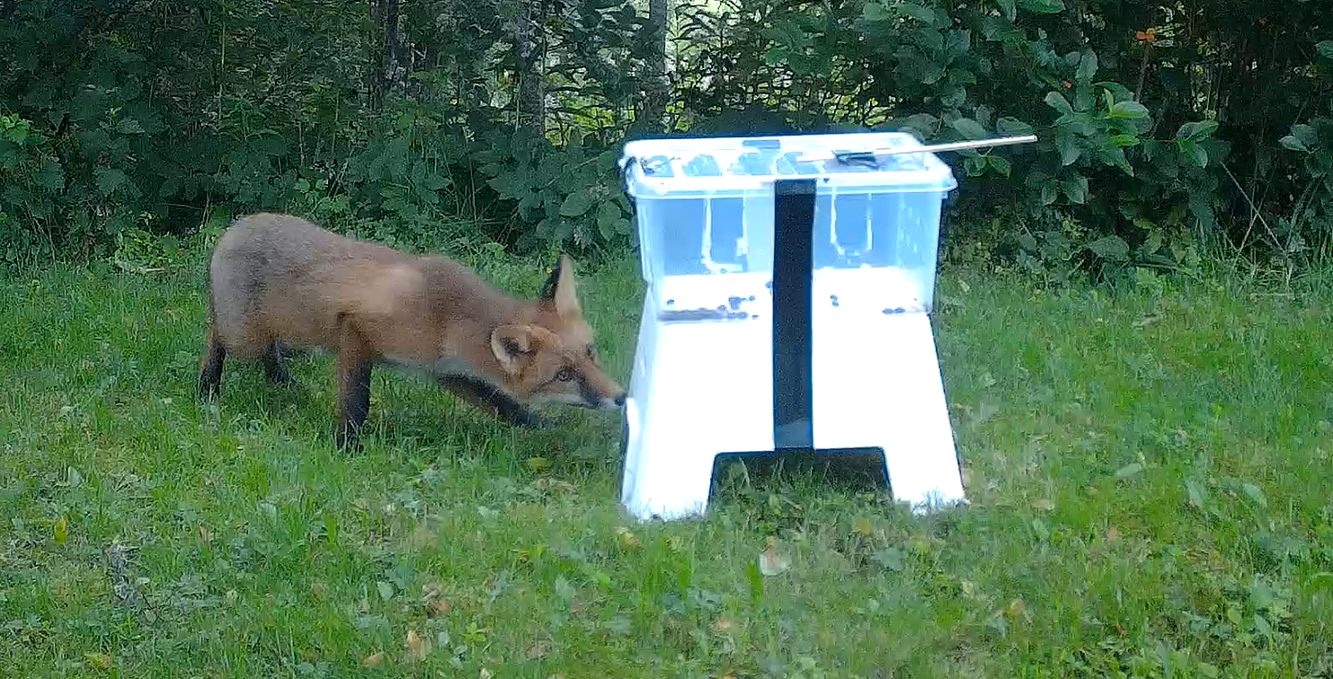 In 2024, we conducted our experiments in 69 gardens/private forests, while in 2025 we added 42 new experimental sites, giving a total of 111 gardens/private forests investigated. Red foxes were observed in 51 gardens and were equally present in rural and urban areas. European badgers were observed in only 9 gardens, mostly in rural areas. Finally, raccoon dogs were observed in 14 gardens, with no observations in the most urbanised areas. From the preliminary analyses, it appears that behaviour is affected by the urban–rural gradient, but also varies greatly between individuals. We are going to continue our behavioural experiments from June to September in 2026 and 2027. If you wish to participate, please fill in the form below to provide the coordinates of your garden and/or private forest. We are interested in both urban and rural areas and are mainly operating in South Finland.